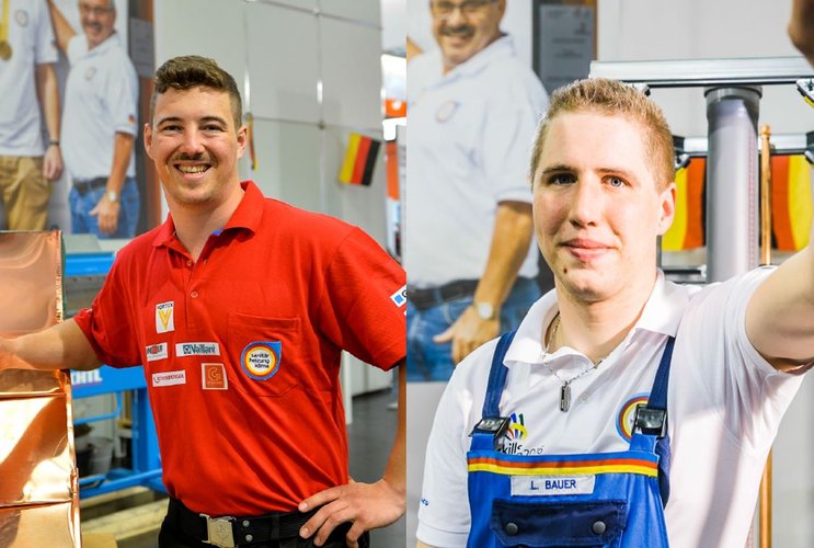 Titelbild: Rechts, Julian Emmert (21) aus Baden-Würrtemberg; SHK-Talent für Skill 49: "Metal Roofing" / Links, Lukas Bauer (22) aus Niedersachsen; SHK-Talent für Skill 15: "Plumbing and Heating"